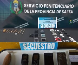 En distintos operativos realizados durante la última semana, el Servicio Penitenciario de Salta incautó droga y elementos prohibidos dentro de los penales de la provincia. Los controles se llevaron a cabo en pabellones, celdas, baños y patios, donde se secuestraron 18 envoltorios de droga, 18 celulares con accesorios, cables y 11 puntas metálicas.